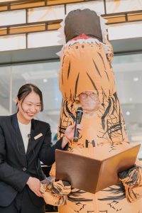 こちらの写真は大阪での恐竜の格好をしメニュー紹介させて頂いたお写真です。