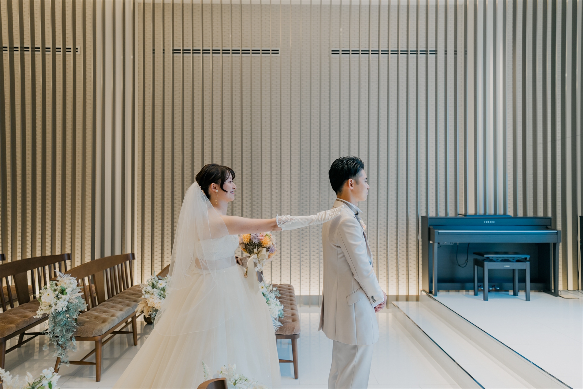 別々の部屋で準備を終えた新郎新婦が